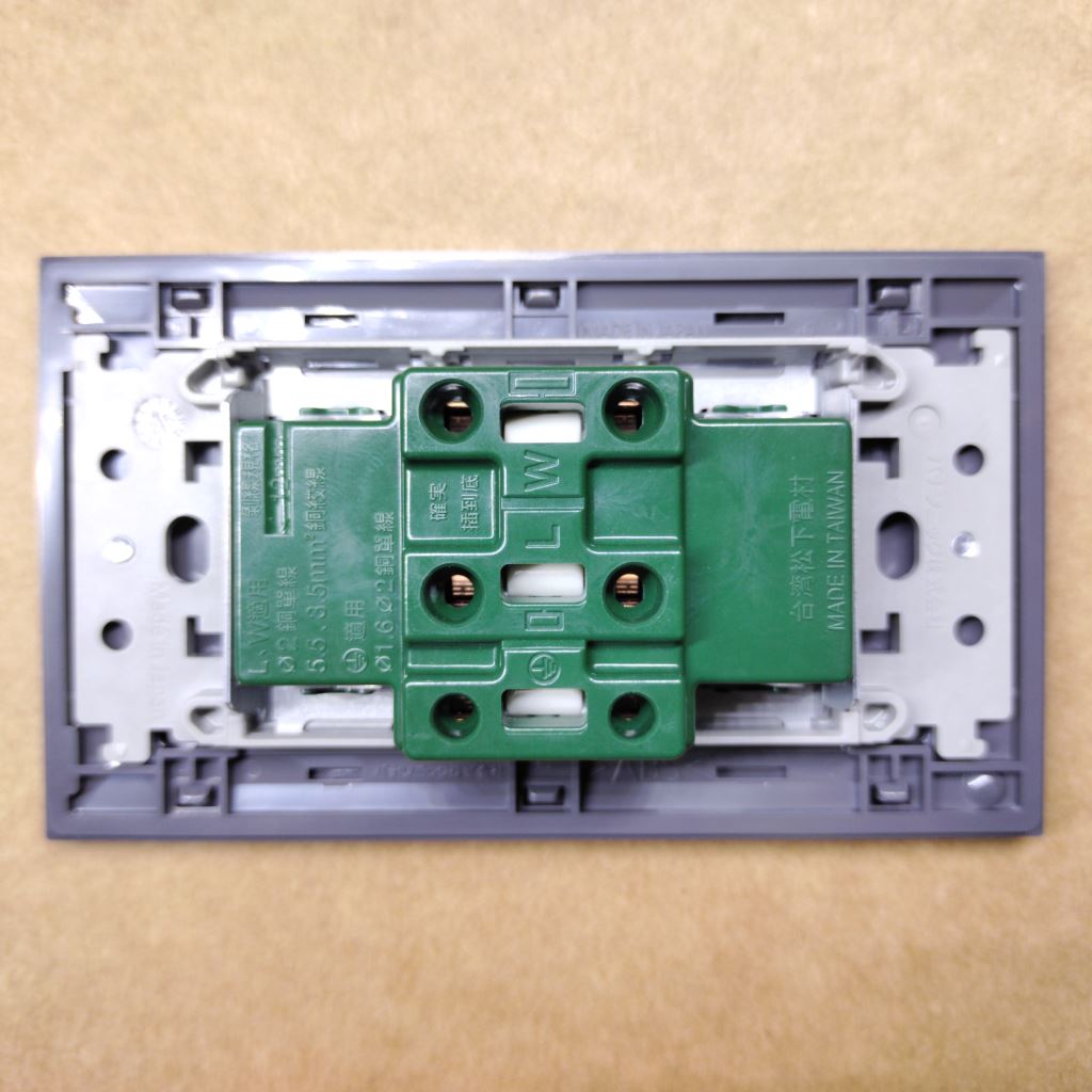 台灣製造!國際牌Panasonic SOSTYLE系列插座,雙孔有接地造型,適用3.5及5.5mm的絞合電線,銅片厚實、堅固耐用,額定電壓110V額定最大電流15A通過經濟部標檢局R41012號及正字標記5263號雙重認證,安全有保障,隨附SOSTYLE系列蓋板,蘊涵劃世代的設計理念,雅緻的霧面消光處理俐落的直角造型美觀大方,頂級塑膠材質不易發黃變色,囿於超商的包裹重量規定,超商取貨最多每單20個,顏色霧灰色,型號WNF151236MH
