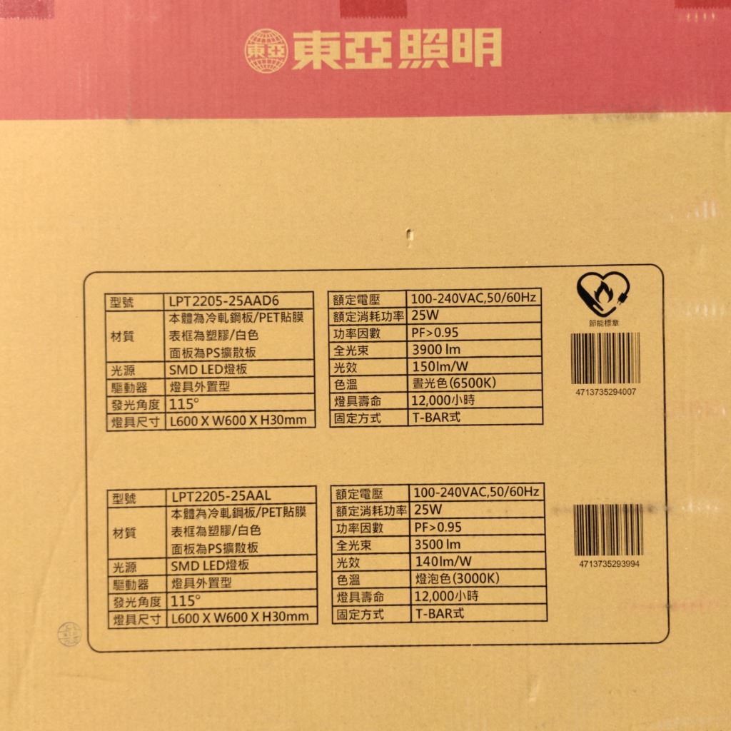 台灣製造_東亞照明_LPT-2205_節能標章_LED輕鋼架平板燈具