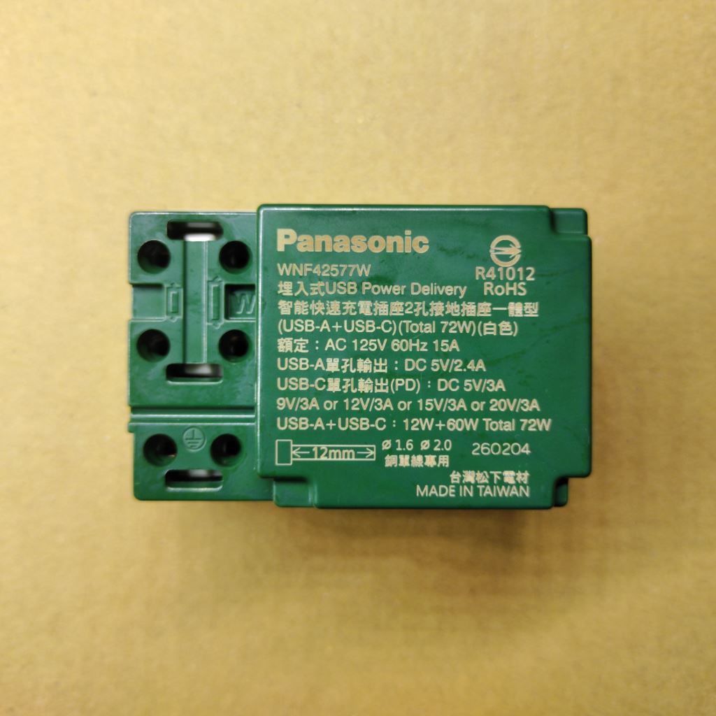 台灣製造_Panasonic_國際牌_白色單品_WNF42577W_USB充電插座